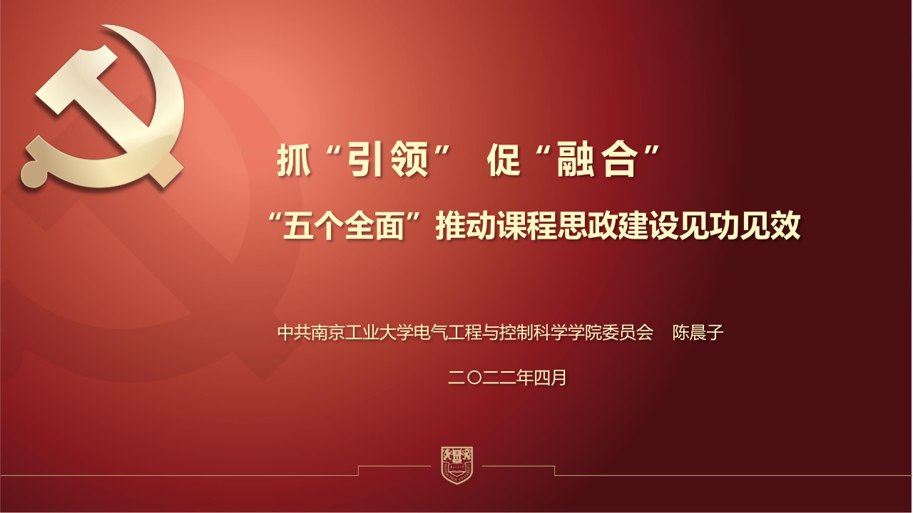 南京工业大学yl23455永利官网党委是“全国党建工作标杆院系培育创建单位”,是校首批“三全育人”综合改革示范学院。2021年,学院《传感器技术》课程被评为首批“国家级课程思政示范课程”,电气工程专业被评为首批“江苏省课程思政示范专业”,自动化专业入选“校课程思政示范专业”。