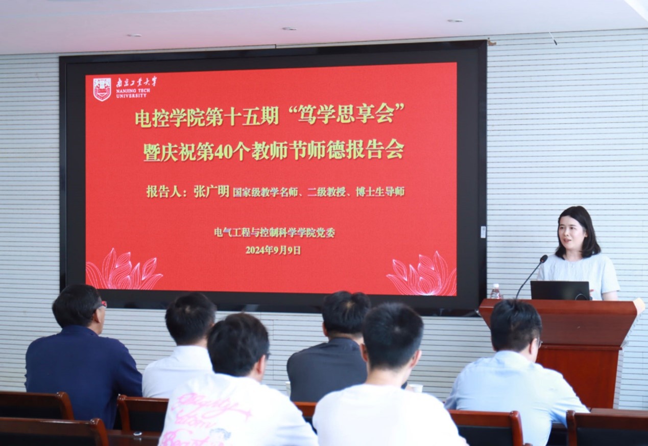 为庆祝第40个教师节,弘扬和传承教育家精神,营造尊师重教的良好风尚,9月9日下午,yl23455永利官网举行第十五期“笃学思享会”,邀请国家级教学名师张广明教授作“做新时代‘四有’好老师”主题报告。院党委书记陈晨子主持会议。