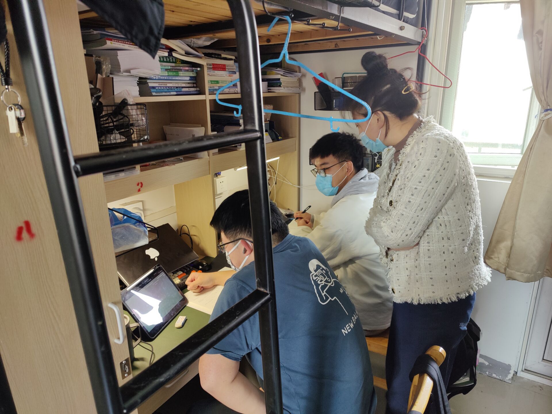 走访过程中,老师们一边查看同学们在线的学习情况,一边借助他们使用的网课平台了解教师在线教学状态。利用课间时间,与同学们亲切交谈,关注管控期间同学们遇到的困难,聆听他们提出的建议与诉求,叮嘱同学们非常时期严格执行疫情防控要求,自觉做到非必要不出校、不购买外卖,以降低物体表面传播病毒的风险,遵守学校有关规章制度,注意宿舍用电用水安全。提醒同学们在疫情防控常态化特殊时期积极响应学校疫情防控号召参加常态核酸检测,保持宿舍通风、内务卫生整洁,公共场所全程正确佩戴口罩、不参加公众聚集性活动、保持社交距离、做好个人防护。嘱托学生党员干部争当先锋模范,以身作则、令行禁止,主动做好纾困解难工作,以自己的实际行动影响和带领广大同学增强信心、战胜困难。